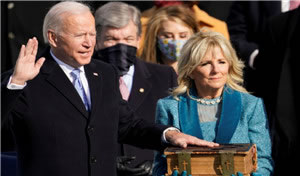 美国东部时间1月20日上午11时30分许(北京时间1月21日凌晨0时30分许),当选总统拜登和副总统哈里斯在华盛顿特区国会山举行的就职典礼上,正式宣誓就任美国第46任总统和副总统。宣誓就职后,拜登随即发表了就职演讲,重点强调了团结、治愈,以及对未来工作的展望。