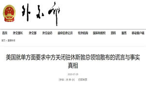 7月29日凌晨,外交部网站发布重要新闻,阐述了“美国就单方面要求中方关闭驻休斯敦总领馆散布的谎言与事实真相”。文章指出,7月21日,美方单方面挑起事端,突然要求中方关闭驻休斯敦总领馆,严重违反有关国际法和国际关系基本准则以及中美领事条约有关规定,严重破坏中美关系。中方就此做出了正当和必要的反应。美方为其错误决定编造借口、散布谎言,在短短几日之内就抛出多个说法不一的版本。但是谎言重复一千遍仍然是谎言。