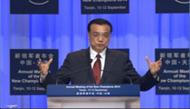 2014夏季达沃斯论坛于9月10-12日在天津举办。在9月11日的开幕全会上,国务院总理李克强发表致辞。李克强表示,要进一步破除一切束缚发展的体制机制障碍,