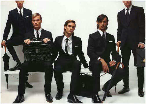 当然,如果不能像财力丰厚的上司那样拥有在袖口上手工绣着名字首字母的衬衫和亚麻手帕的话,那么合体的灰色或者深蓝色西装是基本装备,当然如果能花上2000英镑在萨维尔街量体裁衣手工定制一身衣服就更好了。