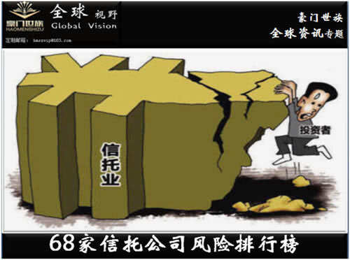 综合考量上述4项指标,我们对68家公司逐一进行了风险分析。华融信托、中信信托、新华信托、中诚信托、安信信托、中原信托、长安信托以及山东信托这8家信托公司的风险最高,风险等级为五颗星。